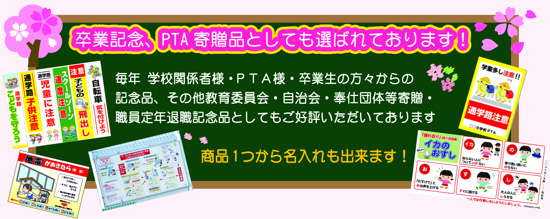 いかのおすし。覚えやすい合言葉が知らない間に身を守ります。ぜひ、 学校などの施設の正門や通学路などへ設置していただきたい商品です。